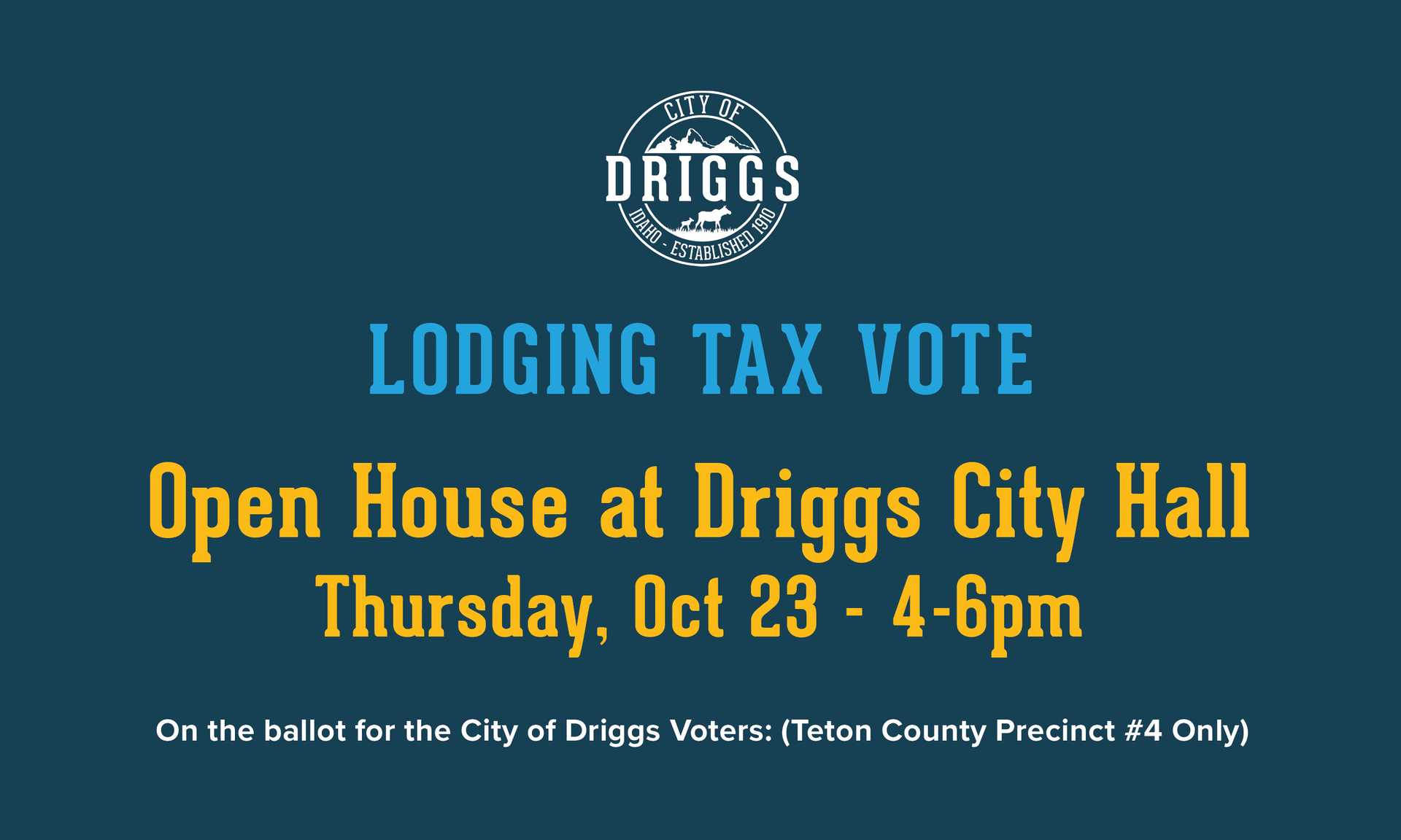 Informational Open House at Driggs City Hall about the upcoming Lodging Tax ballot questions.