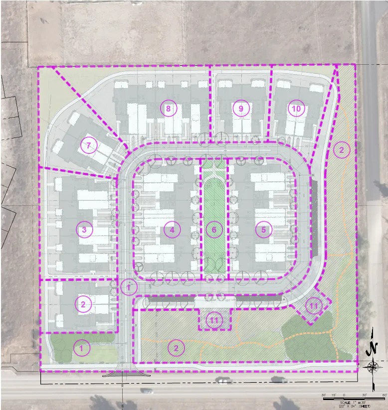 PROJECT SUMMARY: The applicant is requesting approval of the first final plat for the development which creates blocks and lots and includes all public improvements and infrastructure. Phase II will include the parks improvements, remaining mitigation landscaping and platting the first townhome units. Subsequent phases can occur simultaneously.